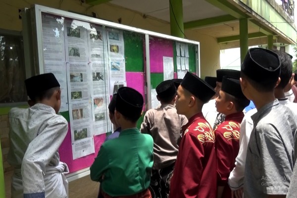 Santri mengakses informasi lewat mading (Foto: Condong Online)