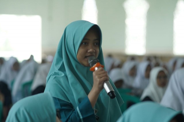 Perwakilan santri akhir KMI bertanya pada saat sesi tanya jawab (dok.condong media)
