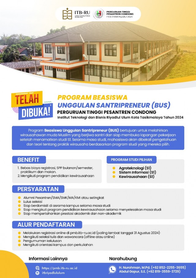 Buka Peluang Besar, Pesantren Condong Melalui STIABI dan ITB-Riyadlul `Ulum Membuka 2 Program Beasiswa S1 Untuk Masyarakat Umum