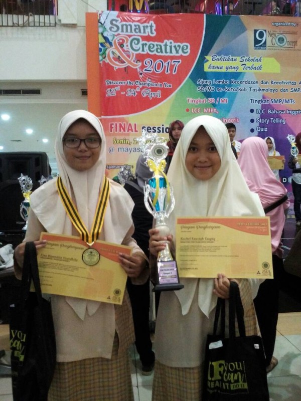 CONDONG-ONLINE – Senin, (24/04) dua santriwati perwakilan dari SMP Terpadu mengikuti perlombaan English Quiz dan Story Telling yang diselenggarakan Lembaga Kursus New Concept. Acara ini berlangsung dari tanggal 22-24 April dan bertempat di Mall Mayasari Plaza. Tak tanggung-tanggung, event bertajuk Smart and Creative 2017 ini diikuti oleh puluhan sekolah tingat SD/MI dan SMp/MTs se-Priangan.