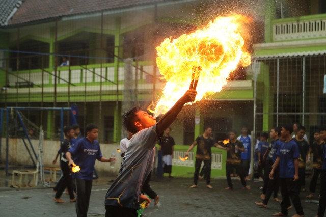 Penampilan debus dari ekstrakurikuler gimnastic (dok. condong media)