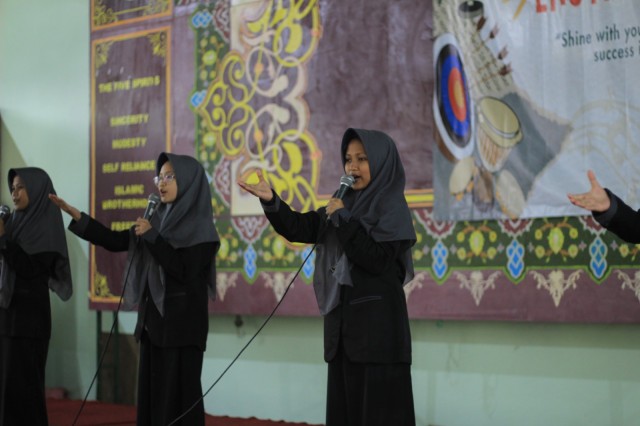 Penampilan ekstrakurikuler nasyid dari santri putri (dok. condong media)