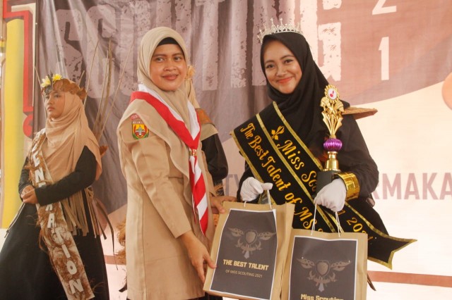 Penyerahan hadiah dan selendang kepada Miss Scouting 2021 oleh Ketua Mabikori Putri (Dok. Multimedia)