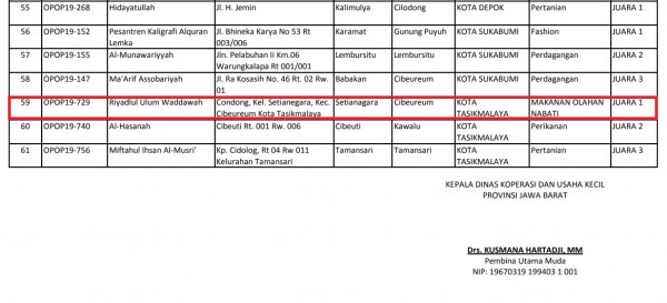 Pesantren Condong menjadi juara 1 OPOP tahap dua se-Kota Tasikmalaya