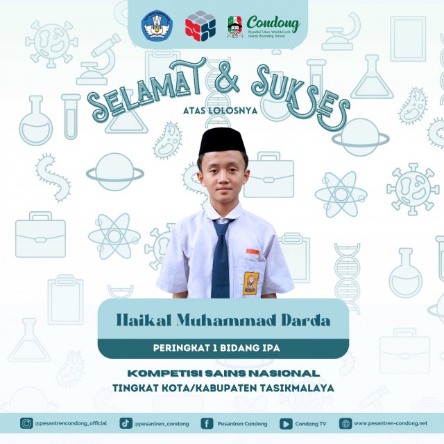 WWW.CONDONG-ONLINE.COM - Tasikmalaya - Pada beberapa waktu silam tepatnya (29-30/05) Pesantren Condong mengirimkan delegasinya untuk mengikuti kegiatan Kompetisi Sains Nasional, kegiatan tahunan yang diselenggarakan oleh negara melalui kementerian pendidikan ini bertujuan untuk mengasah kemampuan para pelajar se-Indonesia dalam bidang eksak atau sains. Kegiatan ini dilaksanakan berjenjang dari Kota/Kabupaten hingga Nasional.
