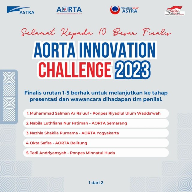 Pengumuman peserta lolos 5 besar (dok.instagram aortacommunity)