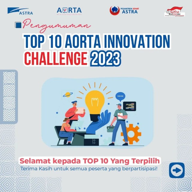 AORTA INNOVATION CHALLENGE (AIC) merupakan Apresiasi tertinggi terhadap Inovasi Program Unggulan yang bermanfaat bagi Masyarakat. Kegiatan ini bertujuan untuk mengembangkan inovasi yang digagas oleh anak muda Indonesia agar bisa mewujudkan remaja sehat dan bermanfaat bagi masyarakat luas.