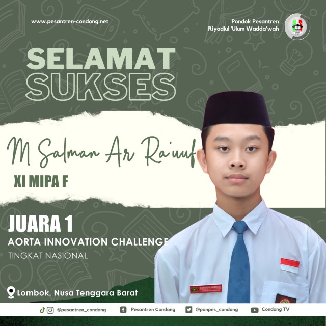 Membanggakan! Santri Condong Kembali Menjadi Juara Pada Ajang AORTA Innovation Challenge Tingkat Nasional