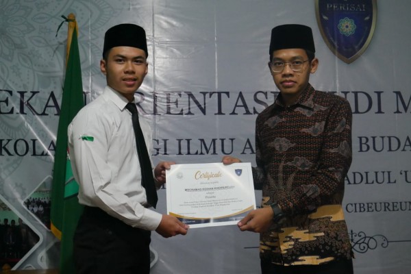 Pemberian penghargaan bagi peserta PERISAI berprestasi oleh Ketua STIABI Riyadlul `Ulum (Foto: Condong Online)