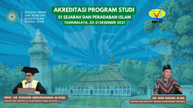 Acara dimulai dari pukul 07:30 yang dipandu langsung oleh Dr. Dadang Yudhistira, S.H, M.Pd., beliau merupakan kepala LPM di STIABI Riyadul ‘Ulum, dilanjut dengan penilaian prodi oleh tim asesor, meliputi seluruh kegiatan Pendidikan dan pengajaran terhadap mahasiswa, Unit Kegiatan Mahasiswa dan juga lainnya, selain itu Prof. Dr. Dudung Abdurahman, M.Hum mengatakan “Dosen pengajarnya minimal ada yang linier di SPI/SKI, agar tetap menjaga kualitas keahlian di bidang prodi ini” tutur beliau dalam akreditasi lapangan daring ini untuk prodi SPI.