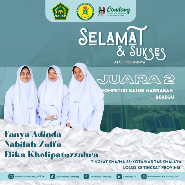 Semoga para perwakilan dari Pesantren Condong ini memberikan penampilan terbaiknya di KSM tingkat provinsi Agustus mendatang.