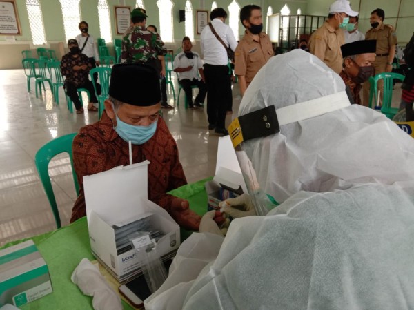 Pimpinan Pesantren Condong, KH. Diding darul Falah saat menjalani Rapid Test (Foto: Condong Online)