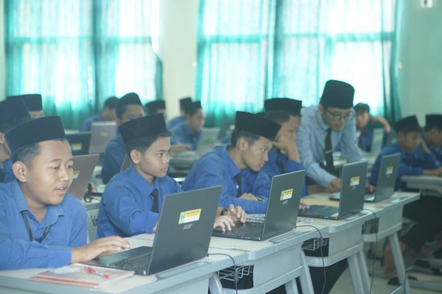 Pelaksanaan ujian tahriri akhir kelas 3 KMI berbasis komputer (dok.condong media)