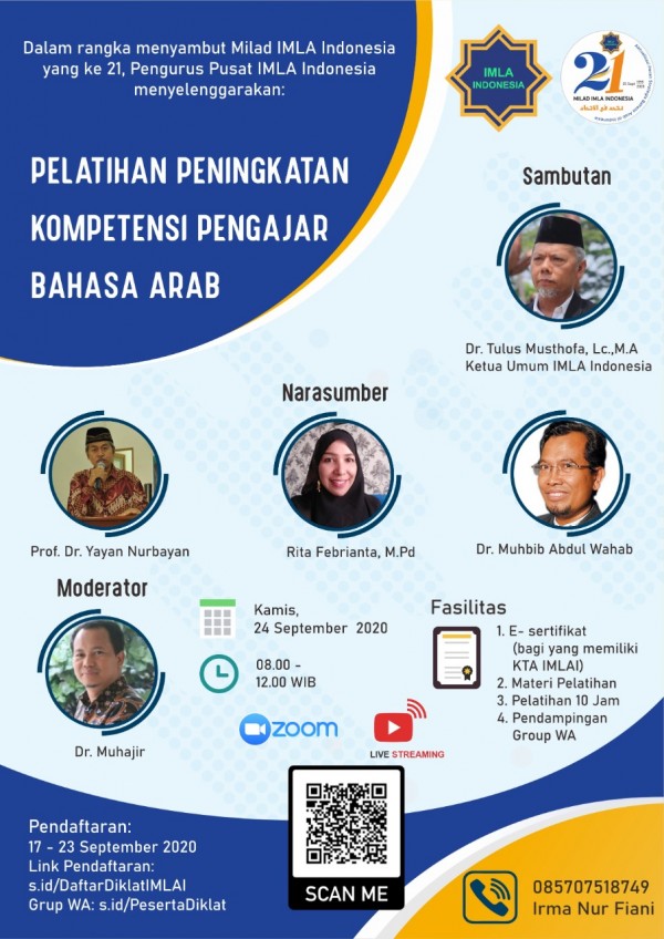Dalam rangka memeriahkan milad Ittihadu mudarrisii lughah arabiyah bi indunisiya atau IMLA, Para pengurus IMLA Pusat mengadakan Seminar Nasional Kurikulum dan Bahasa Arab secara daring. Untuk mendukung acara yang dilaksanakan IMLA prodi BSA STIABI ikut serta dalam acara tersebut.