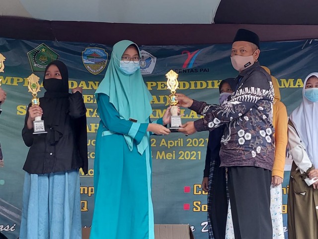 Penyerahan piala kepada juara 2 lomba Olimpiade PAI putri (Dok. Condong Online)