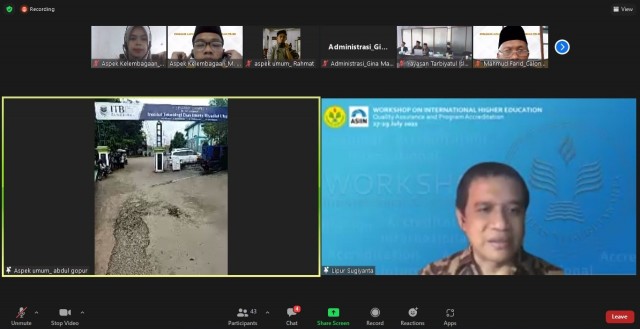 Drs. KH. Mahmud Farid, M.Pd. selaku Ketua ITB-RU, beserta jajarannya turut mengikuti serangkaian agenda visitasi virtual melalui aplikasi zoom di kantor utama Pesantren Condong.