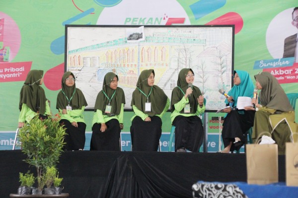 “Ini bagus sekali, santri sudah bisa bikin buku seperti ini. Bahkan saya berani bilang, ini adalah karya terkeren yang pernah saya temukan di pesantren-pesantren. Ke depan saya insyaAllah mau mengajak santri-santri di sini untuk ikut program satu bula satu buku.” Papar beliau.
