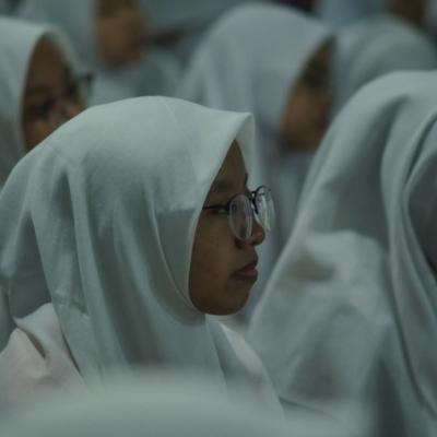 Mahasantri STIABI sedang menyimak sambutan Ketua STIABI dalam acara pembukaan tahun ajaran baru Mata Kuliah Pesantren ...