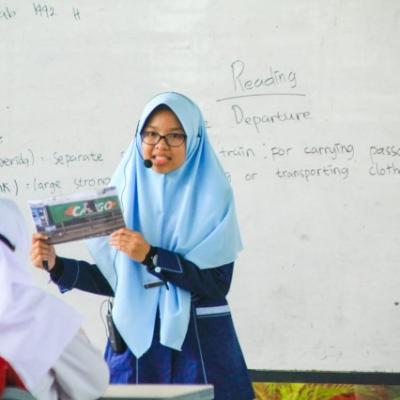 Khansa Nabila Suwardhika saat menjelaskan kosa kata bahasa Inggris menggunakan media gambar CONDONG-ONLINE.COM, Tasikmalaya – Dalam kesempatan Taujihat ...