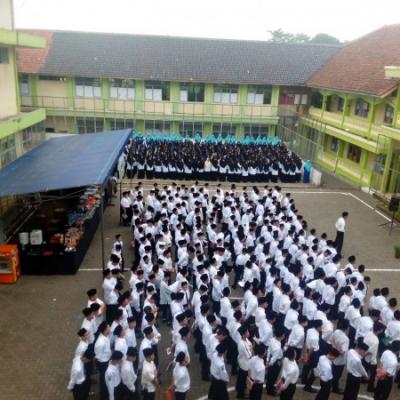 Para santri dan santriwati siap dalam apel untuk memulai MPLS Panggung pemateri MPLS Para santri dan santriwati baru ...