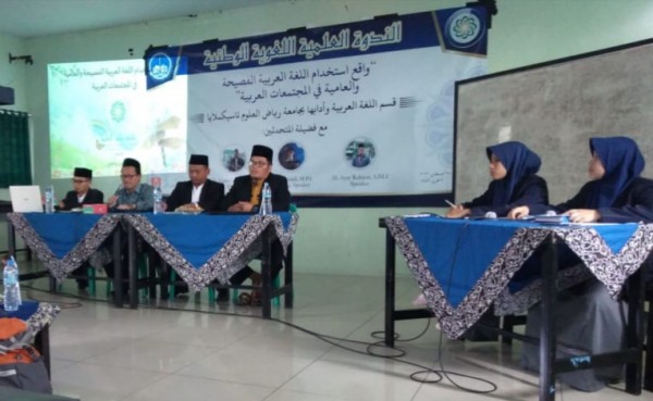 Sebagai wujud dari mata kuliah ta’bir arabiy yang bertujuan khusus agar para mahasiswa mampu berbicara dan fasih dalam berbahasa arab dengan baik, baik melalui pendengaran maupun tulisan dan mampu mengutarakan pikiran dan perasaannya dari apa yang ia ucapkan dan pengetahuan penggunaan bahasa ammiyah dan fashihah di Negara Arab, baik secara lisan maupun secara tulisan Prodi Bahasa & Sastra Arab mengadakan nadwah ilmiyah lughowiyah wathoniyah dengan judul “Waaqi’u Istikhdami al-Lughah al-Arabiyah al-Fashihah wal ‘Amiyah fi al-Mujtama’aat al-Arabiyah”