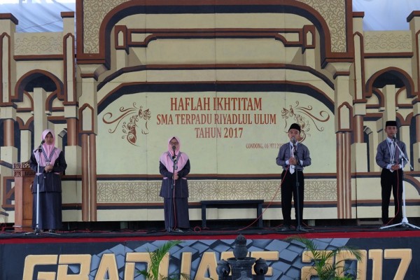 CONDONG-ONLINE – Setelah menjalani pendidikan selama 3-6 tahun di pondok pesantren Riyadlul ‘Ulum Wadda’wah, serta melewati serangkaian ujian, santri akhir lulusan 2017 tiba pada hari terakhir masa mesantren mereka. Sebagai rasa syukur, angkatan ke-11 ini menggelar acara Tabligh Akbar dan Haflah Ikhtitam yang berlangsung Jumat-Sabtu (5-6/05) di Auditorium pesantren Condong.