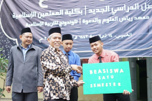 Santri berprestasi mendapatkan hadiah dari bapak pimpinan berupa beasiswa pendidikan selama satu semester (dok.condong media)