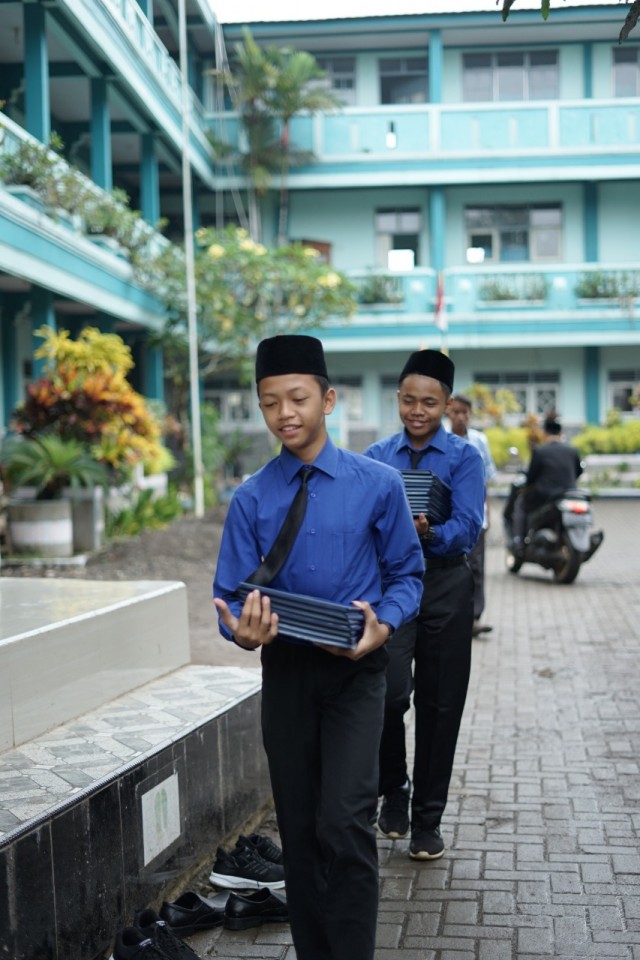 Santri membawa raport pada saat pembagian raport (dok.condong media)