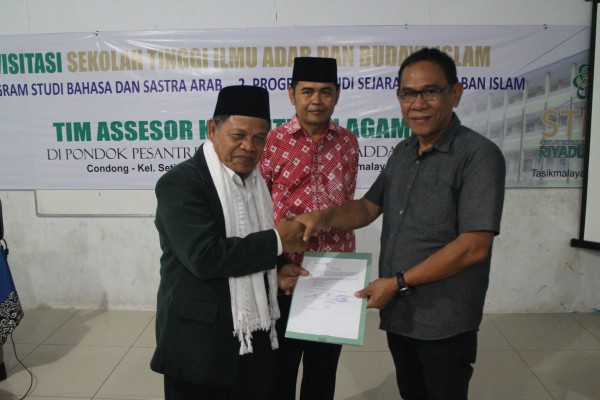 CONDONG-ONLINE.COM- Tasikmalaya, Visitasi Sekolah Tinggi Ilmu Adab dan Budaya Islam Oleh Tim Asssor Kementerian Agama di Pondok Pesantren Riyadlul `Ulum Wadda`wah telah terlaksana malam kemarin pada hari Kamis,3 Mei 2018. Acara yang berlangsung singkat ini telah mengukuhkan kekuatan dan keyakinan dididirakanya STIABI dengan dua jurusan perdana yaitu Program Studi Bahasa dan Sastra Arab serta Program Studi Sejarah Peradaban Islam.