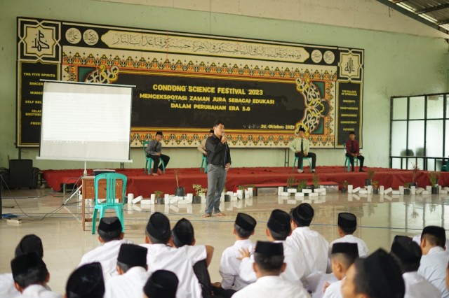 CONDONG-ONLINE.COM, Tasikmalaya - Jum'at (20/10) Sebagai rangka mendukung santri - santrinya dalam perkembangan edukasi sains, Pesantren Condong menggelar Condong Science Festival atau biasa disingkat dengan sebutan CSF. Agenda dengan berbagai macam kreasi perlombaan ini mengusung tema purbakala dengan mengangkat peninggalan - peninggalan Zaman Jura sebagai ciri khasnya. Para santri pun cukup antusias mengikuti 9 mata lomba yang disiapkan oleh panitia.